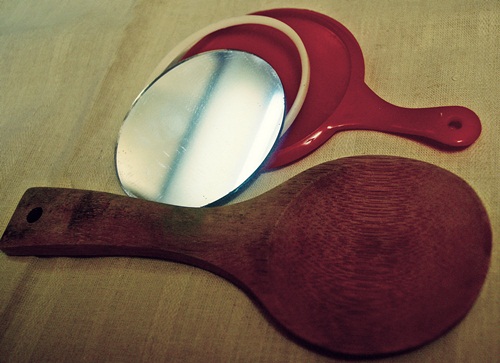 Hi Everyone Linda here. A month ago I was at a hotel and needed a magnifying mirror. OK, I am getting old and can not get my eye make up on with out one. There wasn't any around. When I got home I remembered I had my four Mary Kay mirrors from when I sold MK. I got one out and thought here is my project. I took the mirror that looked like this.
